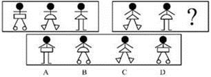 正确选项为( )。 A.A B.B C.C D.D 答案:D。 解析:此题考查的是样式类中的遍历。当第一组图形和第二组图形出现几乎相似的特征——“人的身体”时,这道题可以定为遍历型题目,第二组图形中,下部缺少“2个圆形”, A、C选项排除;中部缺少“长方形”,符合的">