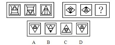 A.A B.B C.C D.D 答案:C。 解析:本题考查图形的样式。在第一组图形中,第三个图形最外围的图形,为第一个图形最内部的图形;第三个图形,次外层的图形为第一个图形中第二层的图形;第二组图形也应遵循此规律。因此,本题答案为C选项。">