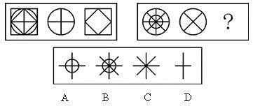 A.图A B.图B C.图C D.图D 答案:A。 解析:本题考查样式类的运算问题。观察题干给出的第一组图形,可知在第一个图形中去掉第二个图形,留下的部分就是第三个图形,也就是相减。第二组图形也遵循此规律。只有A项符合这一规律。">