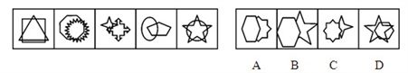 本题考查图形的外在样式。题干图形都是由两个图形叠加而成,且不存在相互覆盖现象。因此,本题答案为D选项。