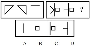 A.图A B.图B C.图C D.图D 答案:C。 解析:本题考查的是样式类的去异存同规律。第一、二个图形叠加,去掉不同的部分得到第三个图形。正确答案为C。">