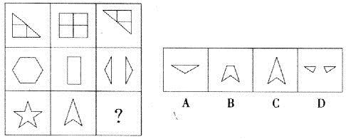 A.A B.B C.C D.D 答案:D。 解析:每行前两个图形叠加去同存异得到第三个图形。">