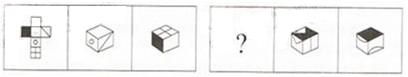 答案:B。 解析:本题属于结构类,主要考察了图形的折叠。第一组图形中,第一个图形是平面图形,第二个、第三个图形是该图形的折叠图形;第二组图形中,根据第二个折叠图形中黑底白三角特正面和白底白三角特征面之间的相邻关系,公共边是白底白三角的底边,所以排除A、D选项;根据第二个折叠图形横线特征面与黑底白三角特征面之间也是相对关系,而直线平行于底白三角特征面对称轴方向,C选项中方向为垂直,所以排除C选项。因此,本题选择B选项。">