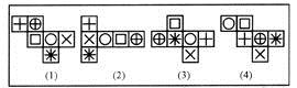 A.(1)与(2) B.(1)与(3) C.(2)与(3) D.(3)与(4) 答案:D。 解析:第一个图形中的“