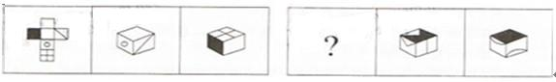 本题属于结构类,主要考察了立体图形的折叠问题。第一组图形中,第一个图形是平面图形,第二个、第三个图形是该图形的折叠图形;第二组图形中,根据第二个折叠图形中黑底白三角特正面和白底白三角特征面之间的相邻关系,公共边是白底白三角的底边,所以排除A、D选项;根据第二个折叠图形横线特征面与黑底白三角特征面之间也是相对关系,而直线平行于底白三角特征面对称轴方向,C选项中方向为垂直,所以排除C选项。因此,本题选择B选项。