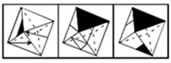本题可采用排除法。根据题干中的第一个图形可知,箭头指向顶角的面和有小黑三角的面不是相邻面,因此排除A项;根据题干中的第一个图形可知,含箭头的两个面中,箭头应该接近,而不是分离,因此排除B项;每个面相邻的有三个面,根据题干中的第一个图形可以看出,与箭头指向边的面相邻的两个面在C项中均未出现,因此排除C项。综上,故正确答案为D。
