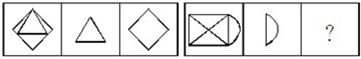 题干中前一组图都根据竖轴对称,属性一致;后一组图前两幅图都根据横轴对称,所以待选图形也应符合此规律,排除A、B。另外观察题干中所有图形均为封闭图形,过待选图形也应符合此规律,排除C。故正确答案为D。