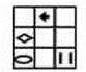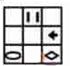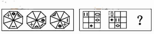 第一幅图中的四种符号按如下方式变化:“加号”每次逆时针移动两格,“减号”每次逆时针移动一格,“三角形”每次顺时针移动三格,“圆形”每次顺时针移动两格。第二幅图中“竖线”由上至下在对角线上移动,“菱形”和“箭头”围绕边框每次顺时针移动两格,“椭圆”围绕边框每次逆时针移动两格。