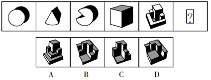 A.A B.B C.C D.D 答案:B。 解析:每组第二个第三个图形组合构成第一个图形,故选B。">