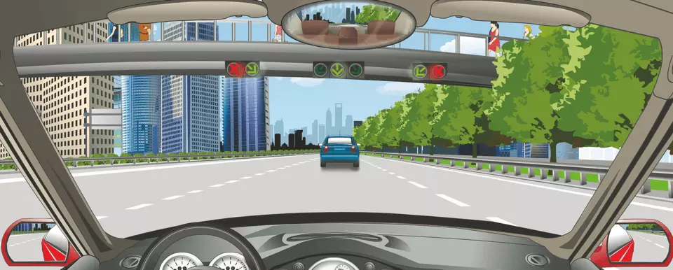 A.禁止车辆在两侧车道通行 B.减速进入两侧车道行驶 C.进入右侧车道行驶 D.加速进入两侧车道行驶 答案:A。 解析:两侧车道都是红灯都不可以通行,因此是禁止车辆在两侧车道通行。">