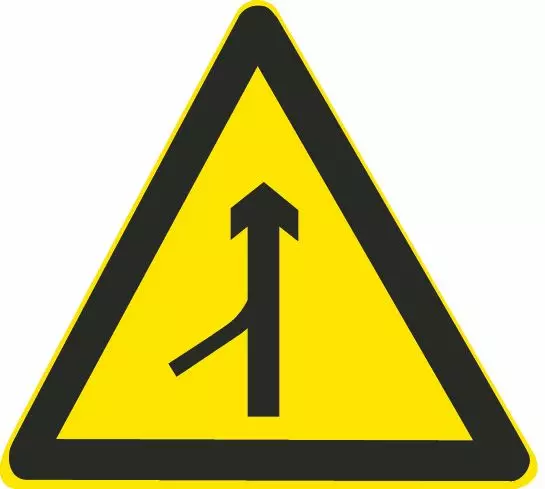 黄底为警告标志,此标志表示注意合流。用以警告车辆驾驶人注意前方有车辆汇合进来。
