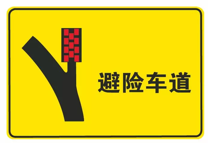 此标志表示避险车道。避险车道是指:在长陡下坡路段行车道外侧,增设的供速度失控车辆驶,离正线安全减速的专用车道。