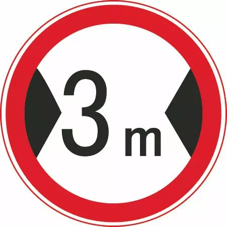 限制宽度为3米:表示禁止装载宽度超过标志所示数值的车辆通行。此标志设在最大允许宽度受限制的地方。 以图为例:装载宽度不得超过3米