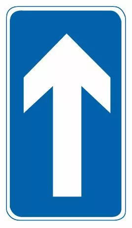 此标志表示该道路为单向行驶,已进入车辆应该按标志指示方向行车,图中为直行。