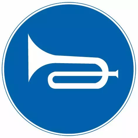 此标志表示机动车行至该标志处应鸣喇叭,以提醒对面车辆驾驶人注意并减速慢行。一般在公路的急转弯处,陡坡等视野不良路段的起点。