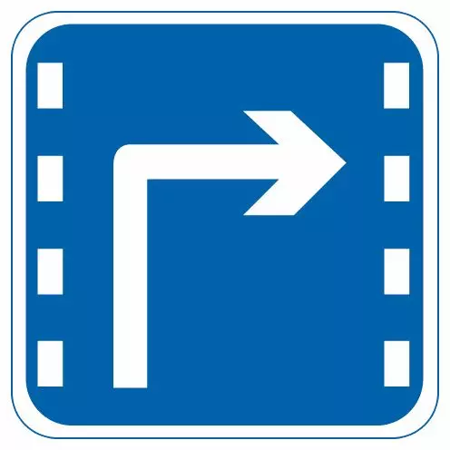 此标志表示车道的行驶方向,图中向右,表示只准一切车辆向右转弯。