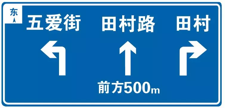 此标属于指路标志,是路径指引标志。表示四车道及以上公路交叉路口预告。指示标志都没有文字,有文字的都是指路标志。