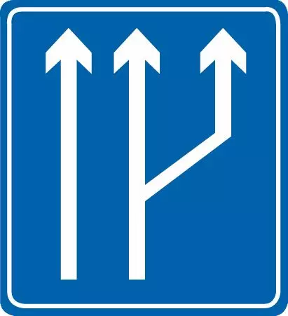 A.向右变道 B.分流处 C.车道数增加 D.路面变宽 答案:C。 解析:俩个车道变成三个,表示车道数增加。">