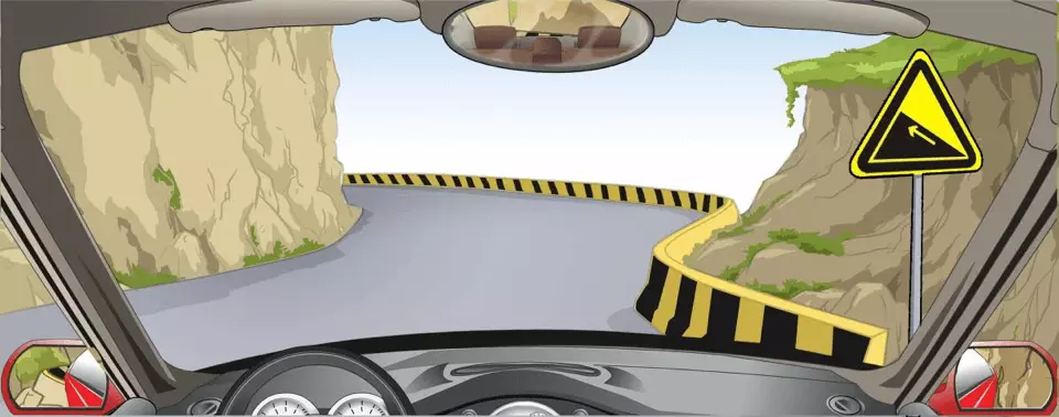 右侧标志是上坡路,所以要挂低档沿右侧行驶。