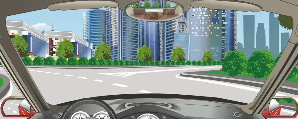由图可知,前方有两条道可供行驶,而驾驶车辆若想要离开环形路口,就要靠右侧行驶转出,此时要开启右转向灯告知其他车辆你要离开了。