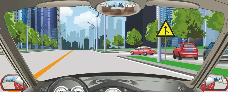 由图可知,前方会有车辆从支路汇入主路,因此为了避免支路的车辆汇入时发生碰撞,所以要减速慢行,并注意周围的机动车。