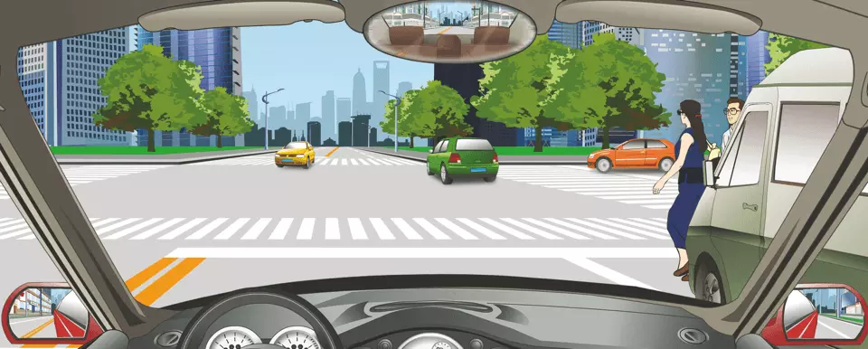 由图可知,有行人正从人行横道线上横穿道路,而机动车已临近人行横道线,此时应停车让行,以免相撞,因此本题错误。