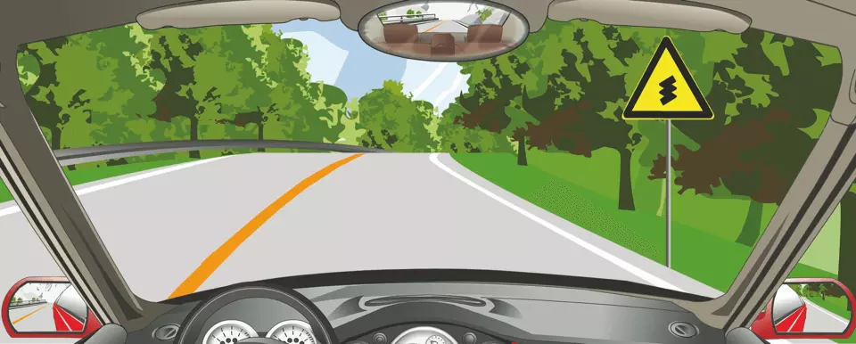 右侧标志警告前方是向右反向弯路。