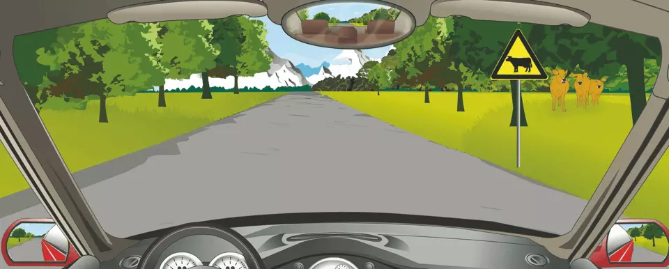 注意牲畜:用以提醒车辆驾驶人注意慢行。设在经过放牧区、畜牧场等区域的公路上,经常有牲畜横穿、出入的地点前适当位置。