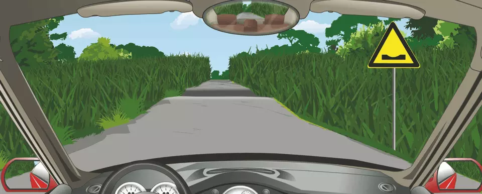 路面低洼:用以提醒车辆驾驶人减速慢行。设在路面突然低洼以前适当位置。