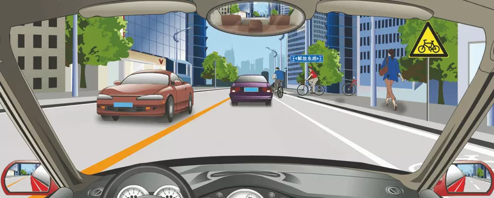 右侧标志提醒前方是非机动车道。