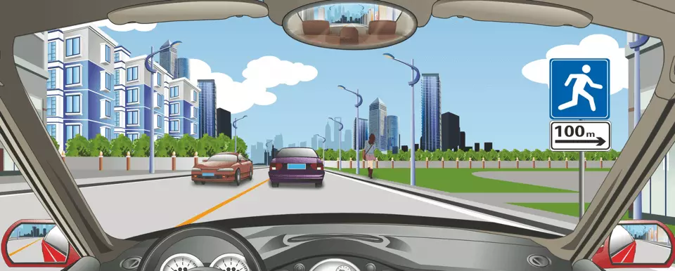 右侧标志告知右前方100米是应急避难场所。