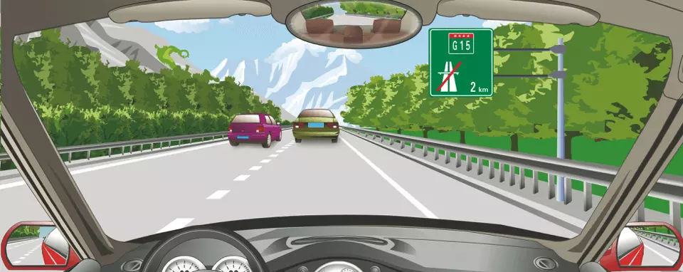 前方标志预告前方距高速公路终点还有2公里。