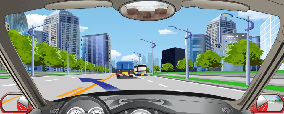 路中心黄色实虚线指示允许超车时越过。