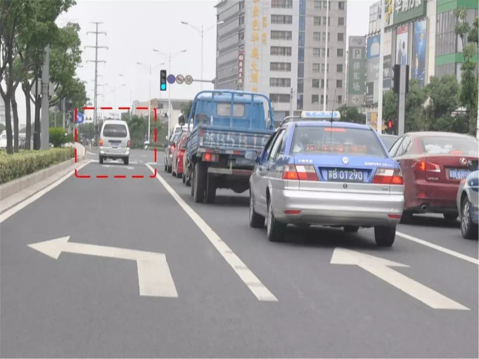 图中红框内所示车辆可以怎样行驶?