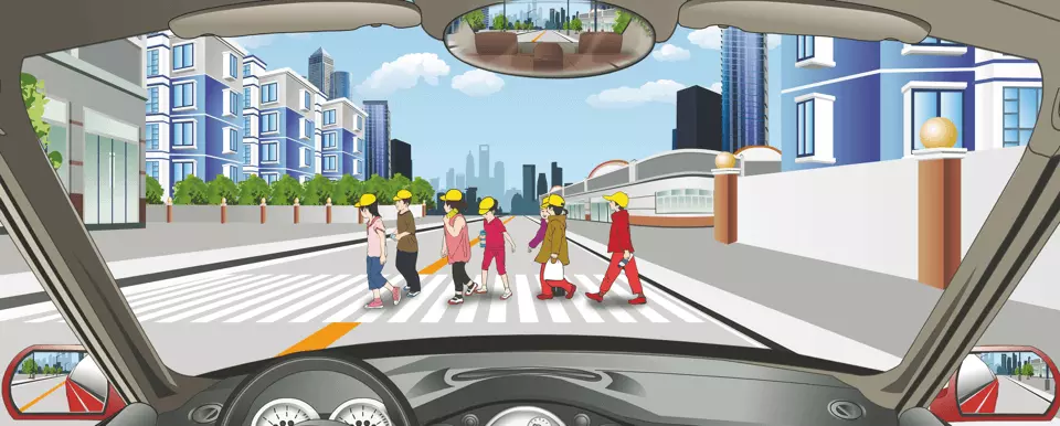 A.正确 B.错误 答案:A。 解析:马路人行横道上有行人穿行,此时应当停车让行。">