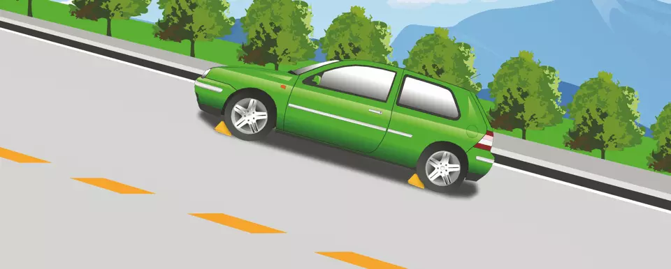 A.正确 B.错误 答案:B。 解析:停在如图的上坡路面上,容易后溜,如图做法并不能防止车辆后溜,正确的做法是在轮胎后面塞住。因此本题错误。">