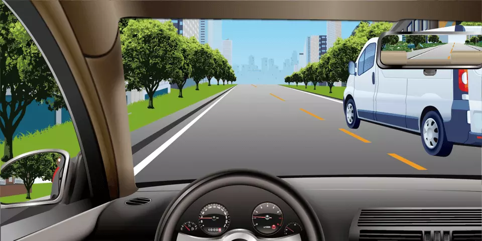 如图所示,当您超越右侧车辆时,应该尽快超越,减少并行时间。