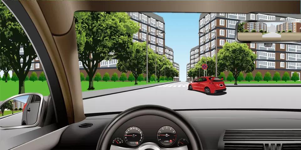 红色车右侧有禁止停车标志,所以在此停车是违法行为。