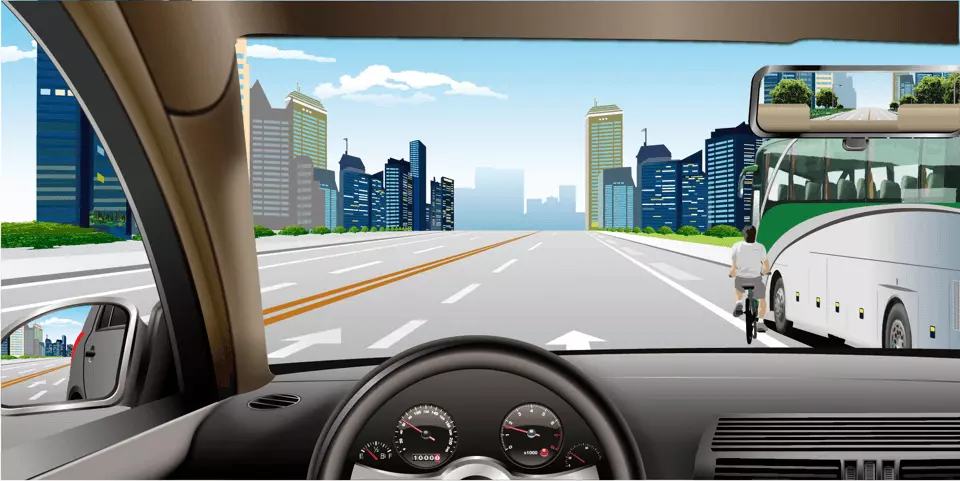 A.正确 B.错误 答案:A。 解析:右前方有骑自行车的人,非机动车有很大的随意性,如果路边大巴车突然启动,骑自行车的人会转向,需要非常注意。">