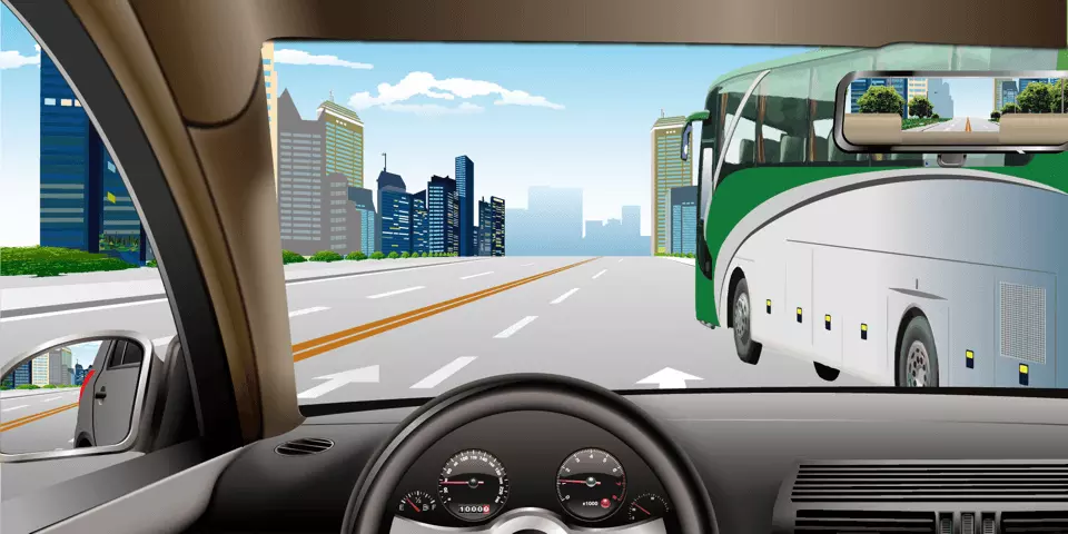 如图所示,驾驶机动车临近停在车站的公交车时,以下做法正确的是什么?