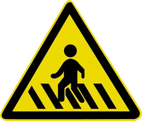 注意行人标志。用以警告车辆驾驶人减速慢行,注意行人。设在行人密集,或不易被驾驶员发现的人行横道线以前的适当位置。