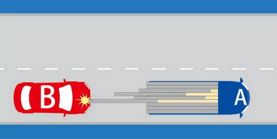 如图所示,A车货物掉落,导致B车与掉落货物发生碰撞,以下说法正确的是什么?