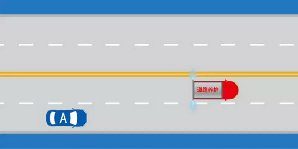 如图所示,驾驶过程中遇到这种情况时,A车可以长鸣喇叭提醒道路养护车辆暂停喷水。