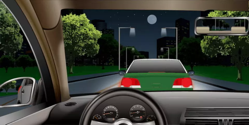 夜间驾驶机动车与同方向行驶的前车距离较近时,禁止使用远光灯,避免灯光照射至前车后视镜造成前车驾驶人眩目。