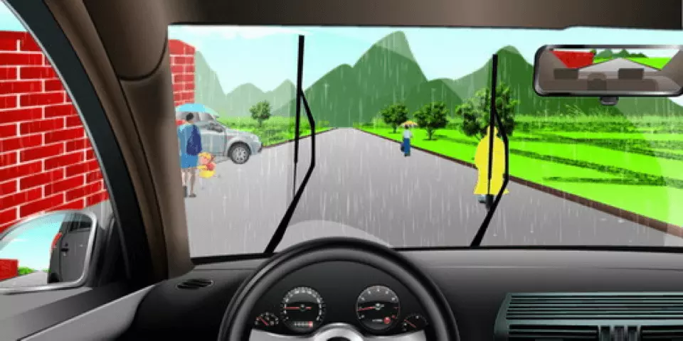 如图所示,驾驶机动车在雨天行驶遇到这种情形时,以下做法正确的是什么?