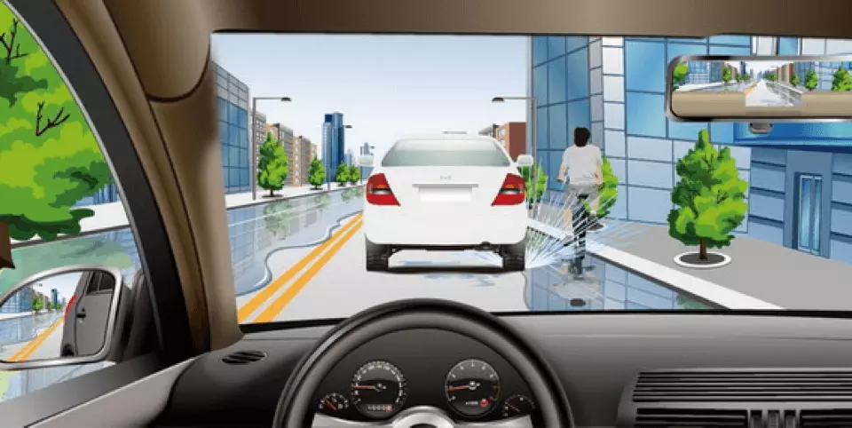 行车经过积水路段应当慢行,注意行人不可将水溅到行人。