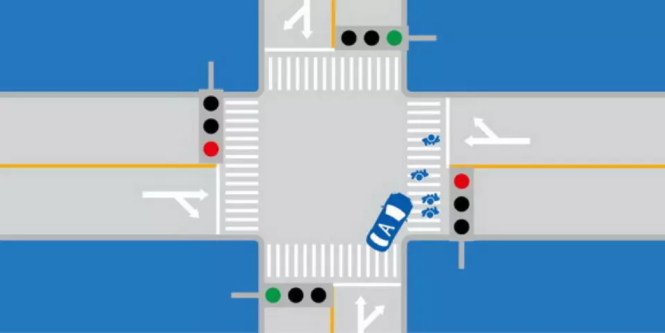 如图所示,驾驶机动车通过交叉路口时右转遇到人行横道有行人通过时,以下做法正确的是什么?