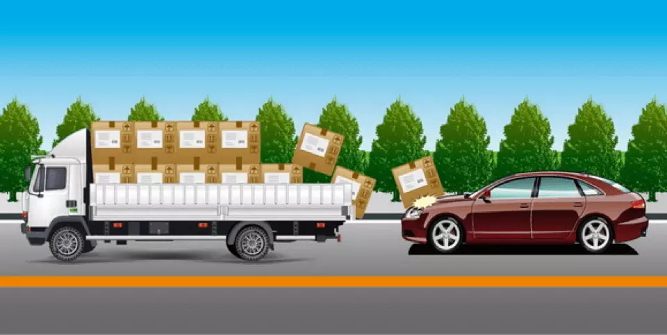 如图所示,造成事故的原因是货车遗洒货物,货车负全部责任。