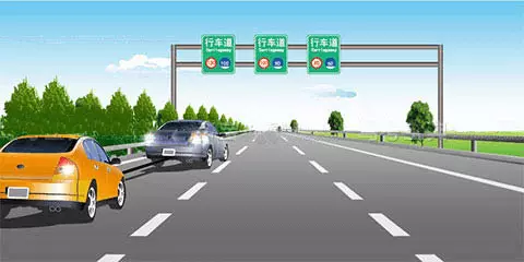 图中的小型客车是在高速公路上充当牵引车,两车应该在最右侧车道上行驶。