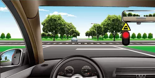 如图所示,在这种情况下遇到红灯交替闪烁时,要尽快通过道口。
